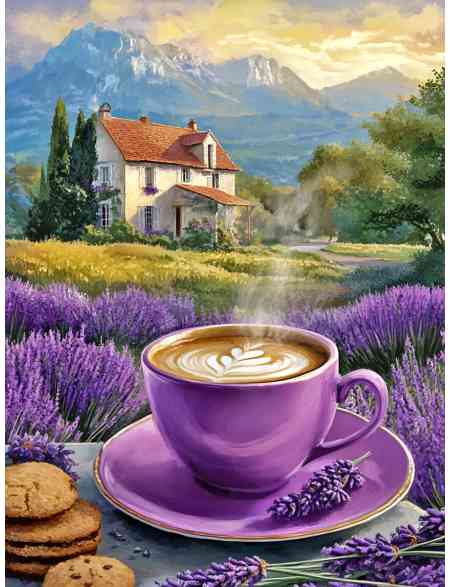 Алмазная мозаика без подрамника «Лавандовый кофе» 25x20 см
