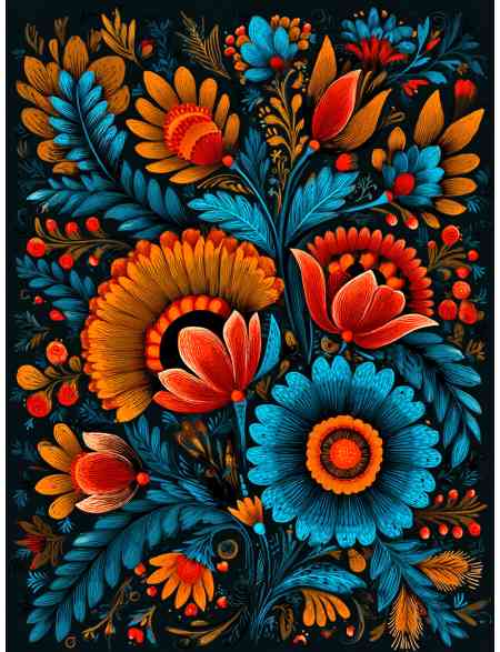 Алмазная мозаика без подрамника «Цветочный узор» 70x50 см