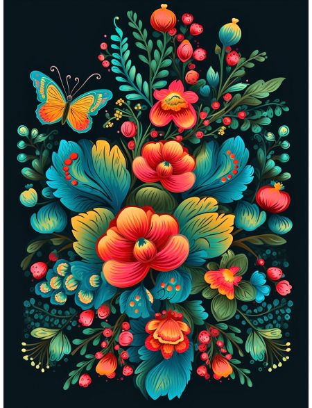 Алмазная мозаика без подрамника «Цветочный узор» 80x60 см