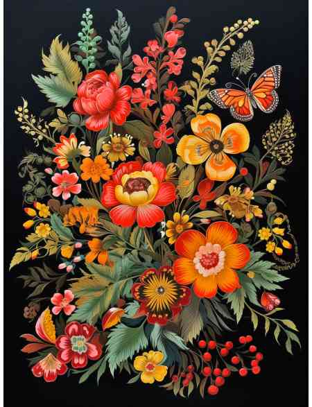 Алмазная мозаика без подрамника «Цветочный узор» 50x40 см