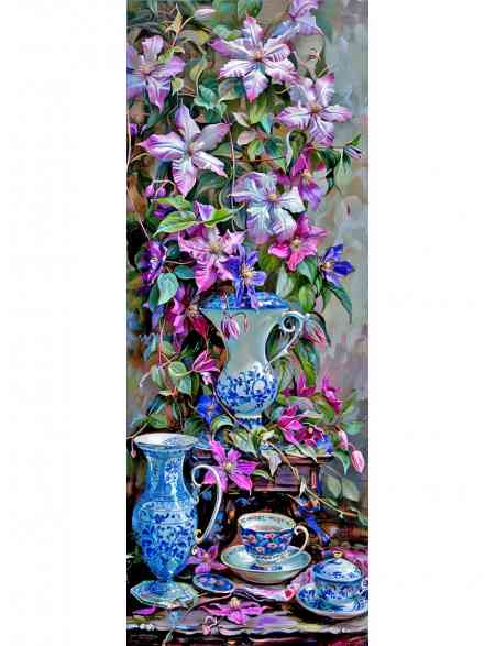 Алмазная мозаика без подрамника «Ваза с цветами» 100x35 см, 41 цветов