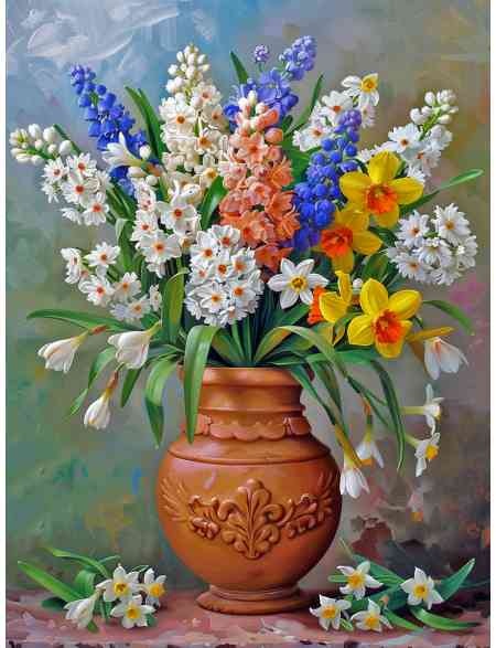 Алмазная мозаика без подрамника «Букет с мускари» 130x100 см