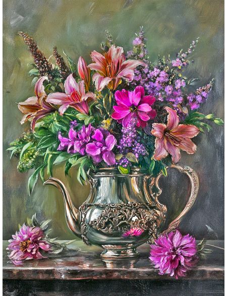 Алмазная мозаика без подрамника «Кувшин цветов» 130x100 см