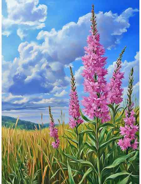 Алмазная мозаика без подрамника «Кипрей иван чай» 130x100 см