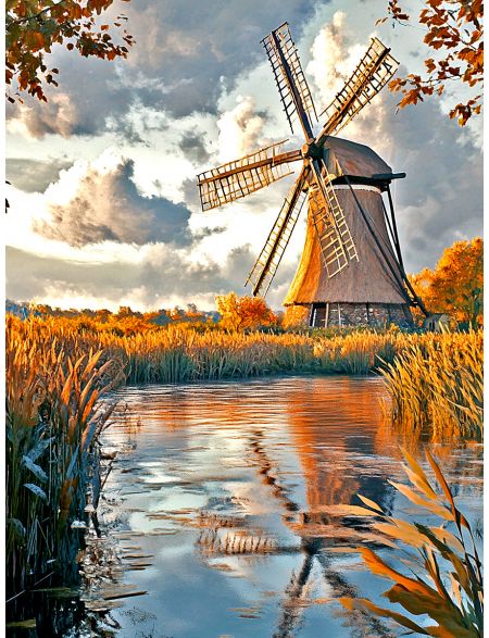 Алмазная мозаика без подрамника «Мельница у воды» 130x100 см