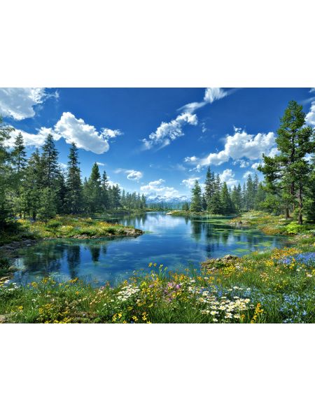 Алмазная мозаика без подрамника «Лесное озеро» 40x30 см