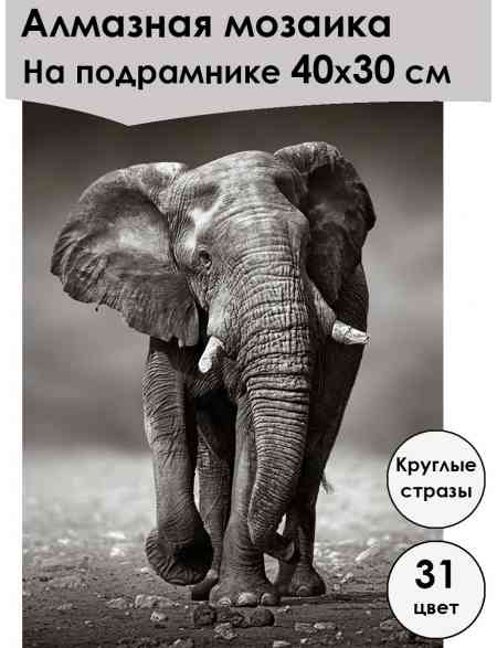 Алмазная мозаика на подрамнике «Слон» 40x30 см, 31 цвет