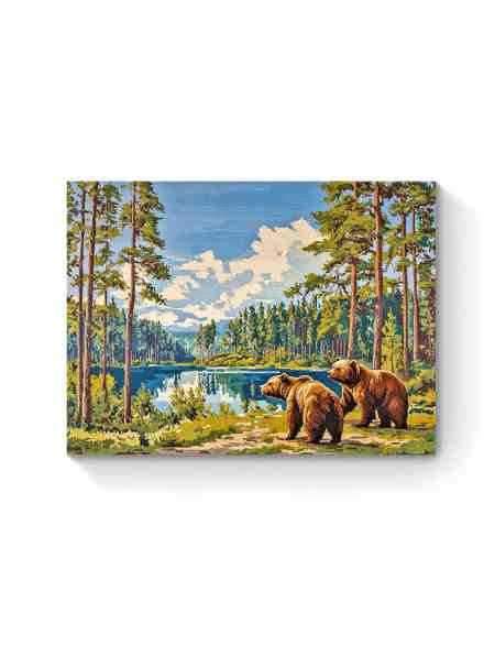 Алмазная мозаика на подрамнике «Медведи у озера» 50x40 см