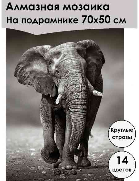 Алмазная мозаика на подрамнике «Слон» 70x50 см, 14 цветов