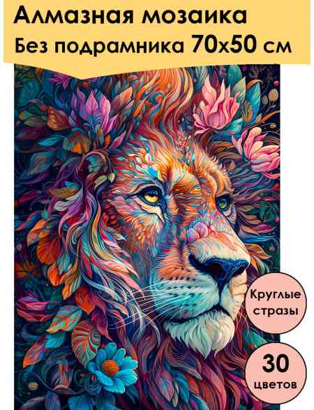 Алмазная мозаика без подрамника «Мистический лев» 70x50 см, 30 цветов
