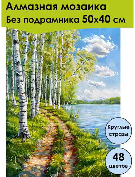 Алмазная мозаика без подрамника «Березки» 50x40 см, 48 цветов