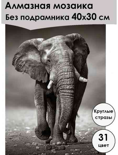 Алмазная мозаика без подрамника «Слон» 40x30 см, 31 цвет