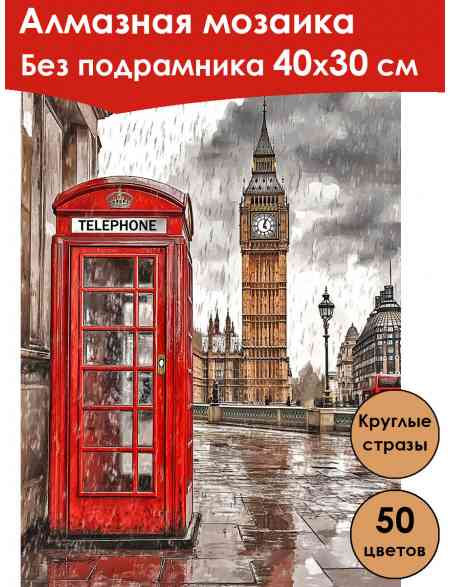 Алмазная мозаика без подрамника «Телефон Лондон» 40x30 см, 50 цветов
