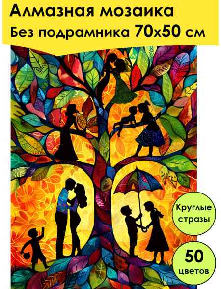 Алмазная мозаика без подрамника «Древо семьи» 70x50 см, 50 цветов