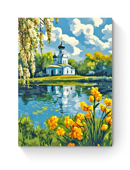 Алмазная мозаика на подрамнике «Церковь у озера» 50x40 см