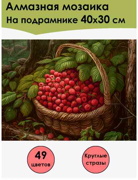 Алмазная мозаика на подрамнике «Земляника Лесная» 40x30 см, 49 цветов