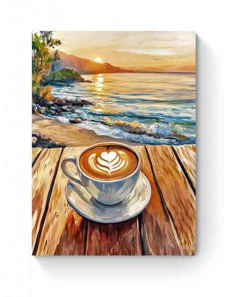 Алмазная мозаика на подрамнике «Капучино и море» 50x40 см