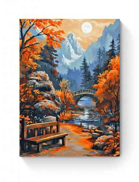 Алмазная мозаика на подрамнике «Осень в горах» 50x40 см, 50 цветов