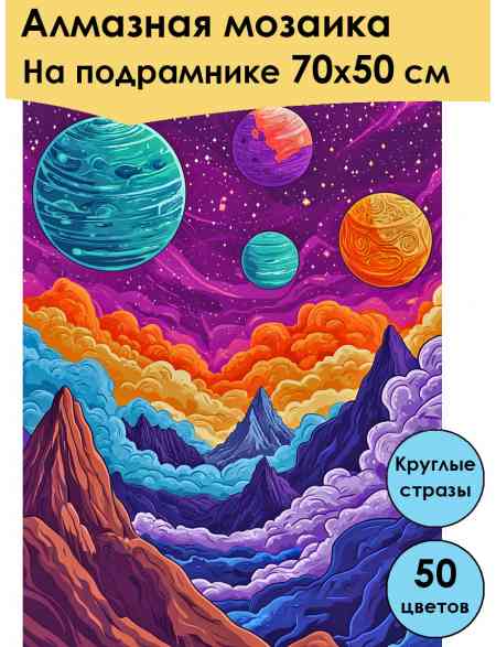 Алмазная мозаика на подрамнике «Космический вид» 70x50 см, 50 цветов