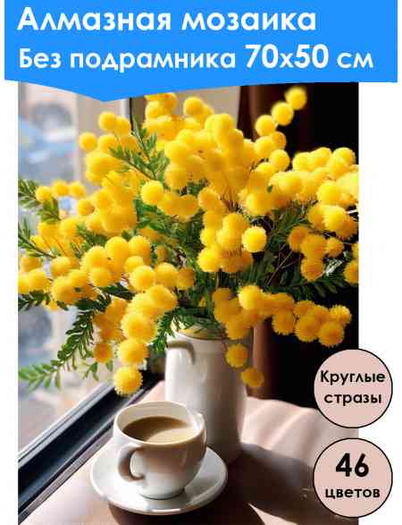 Алмазная мозаика без подрамника «Букет мимоз» 70x50 см, 46 цветов