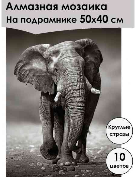Алмазная мозаика на подрамнике «Слон» 50x40 см, 10 цветов