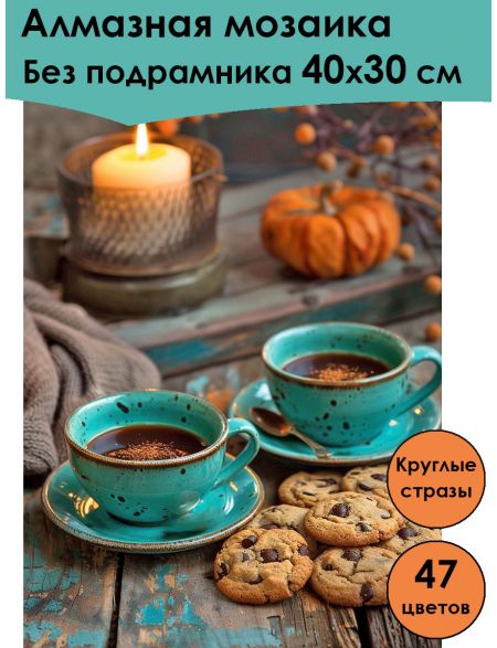 Алмазная мозаика без подрамника «Кофе» 40x30 см, 47 цветов