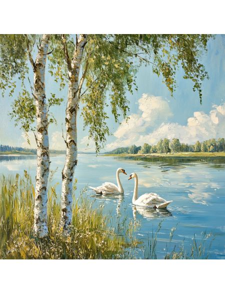Алмазная мозаика без подрамника «Лебеди» 90x90 см