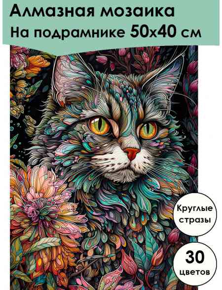 Алмазная мозаика на подрамнике «Мифический кот» 50x40 см, 30 цветов