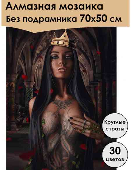 Алмазная мозаика без подрамника «QUEEN» 70x50 см, 30 цветов
