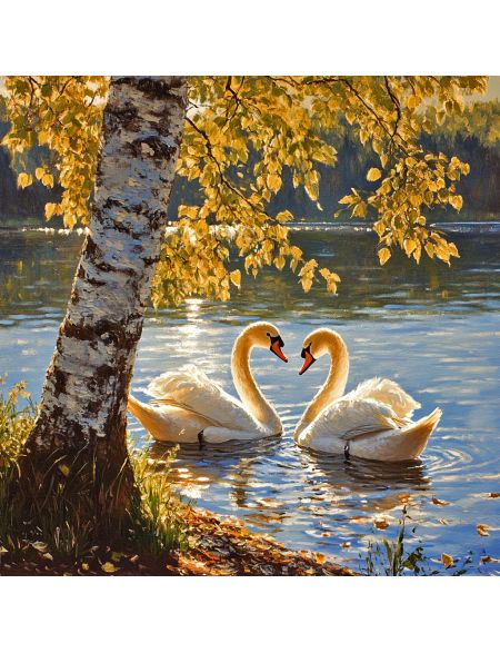 Алмазная мозаика без подрамника «Лебеди» 100x100 см, 50 цветов