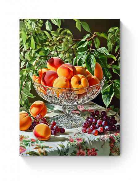 Алмазная мозаика на подрамнике «Персики в вазе» 50x40 см, 50 цветов
