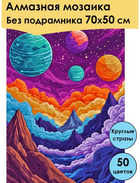 Алмазная мозаика без подрамника «Космический вид» 70x50 см, 50 цветов