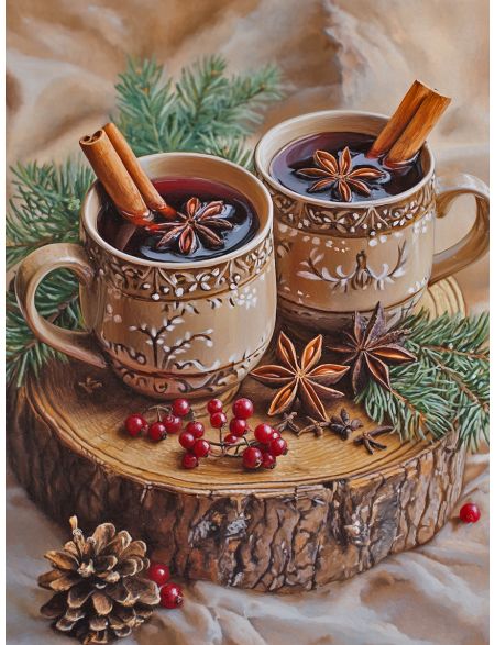 Алмазная мозаика без подрамника «Новогодний пунш» 35x25 см