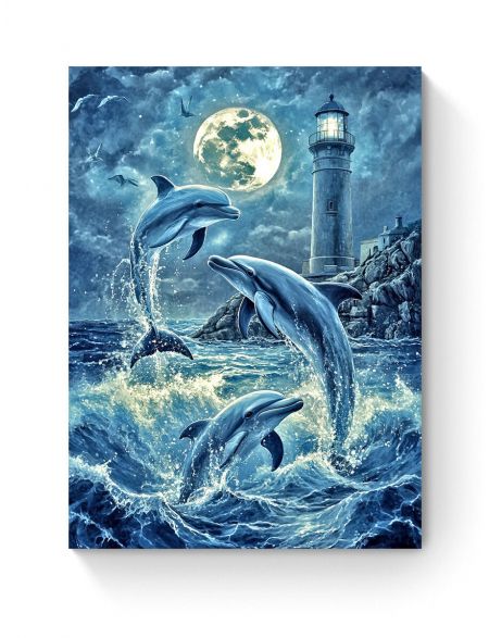 Алмазная мозаика на подрамнике «Дельфины» 50x40 см
