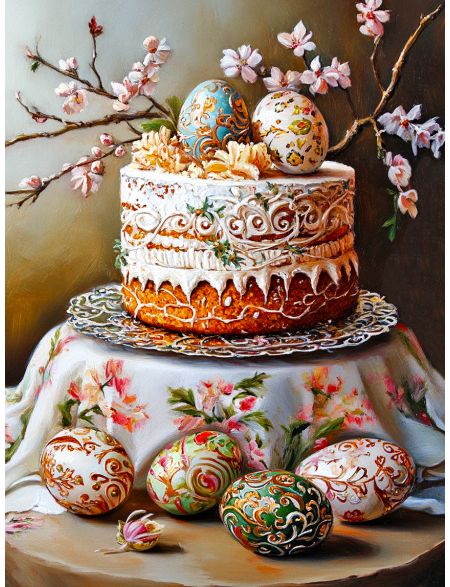 Алмазная мозаика без подрамника «Кулич на пасху» 40x30 см