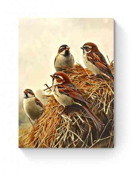Алмазная мозаика на подрамнике «Воробьи на сене» 50x40 см, 50 цветов