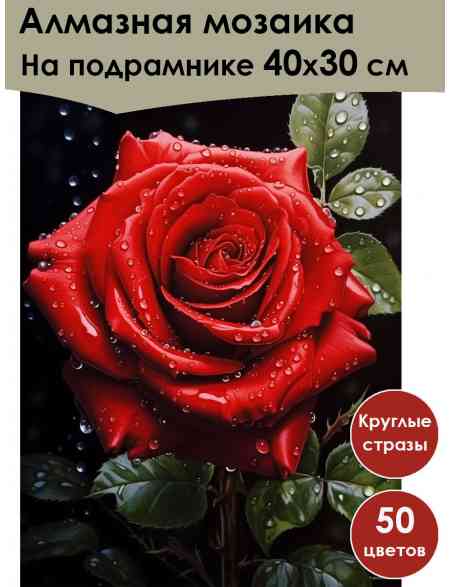 Алмазная мозаика на подрамнике «Роза» 40x30 см, 50 цветов