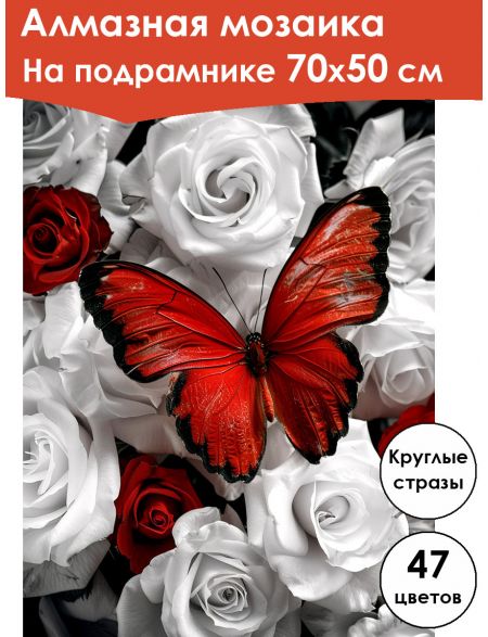 Алмазная мозаика на подрамнике «Бабочка» 70x50 см, 47 цветов
