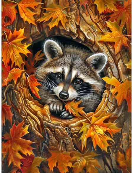 Алмазная мозаика без подрамника «Енот и осень» 50x40 см, 46 цветов