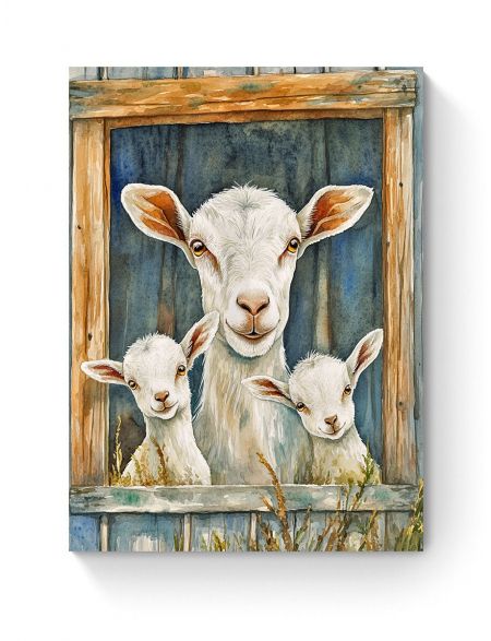 Алмазная мозаика на подрамнике «Коза и козлята» 50x40 см, 50 цветов