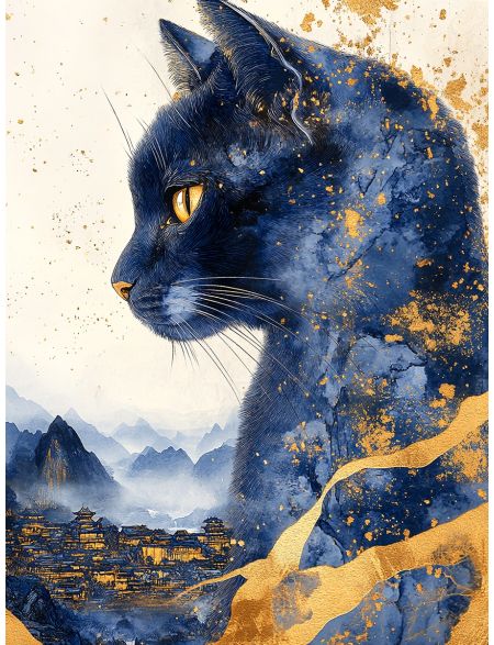 Алмазная мозаика на подрамнике «Дымный кот» 50x40 см, 46 цветов