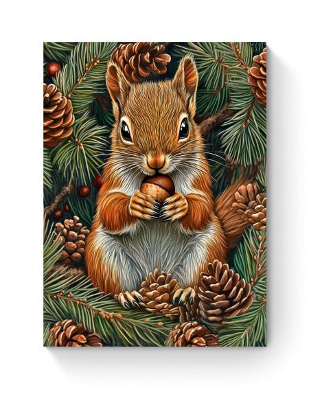 Алмазная мозаика на подрамнике «Белка с орехом» 50x40 см, 50 цветов
