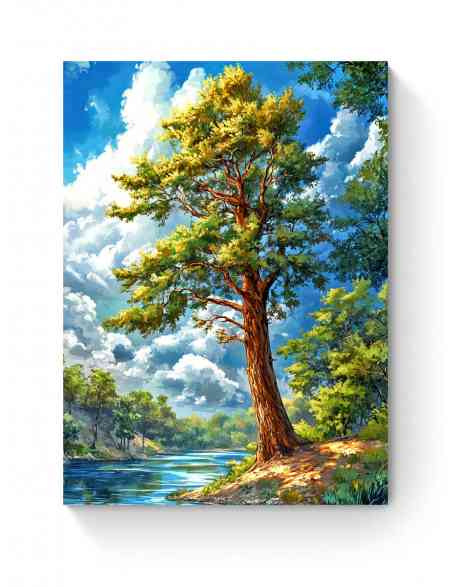 Алмазная мозаика на подрамнике «Сосна у реки» 50x40 см, 50 цветов
