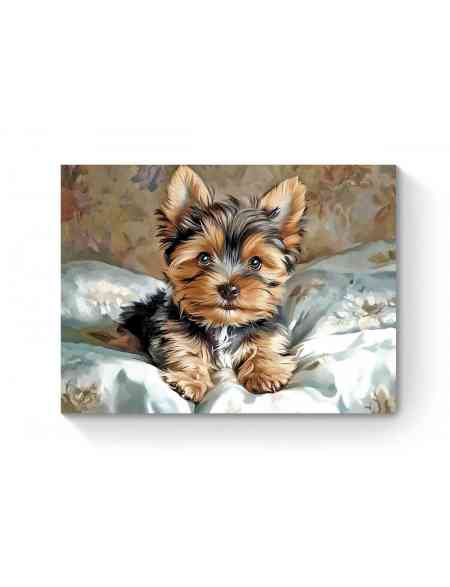 Алмазная мозаика на подрамнике «Йорк щенок» 50x40 см, 50 цветов