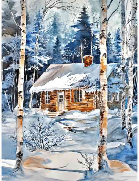 Алмазная мозаика без подрамника «Зимняя сторожка» 40x30 см