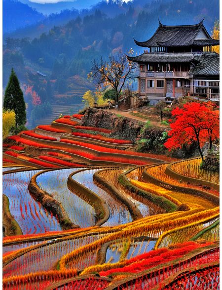 Алмазная мозаика без подрамника «Рисовые террасы» 90x70 см