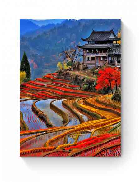 Алмазная мозаика на подрамнике «Рисовые террасы» 90x70 см