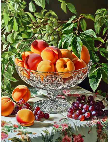 Алмазная мозаика на подрамнике «Персики в вазе» 90x70 см