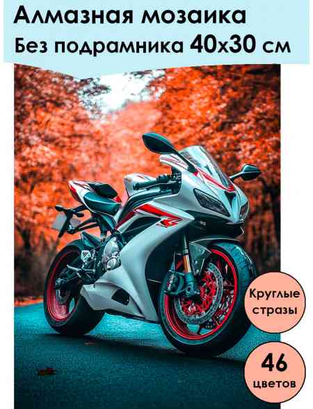 Алмазная мозаика без подрамника «Мотоциклы» 40x30 см, 46 цветов