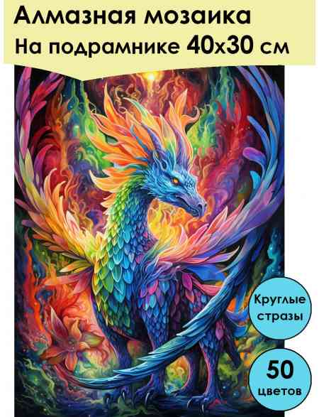 Алмазная мозаика на подрамнике «Дракон» 50x40 см, 50 цветов